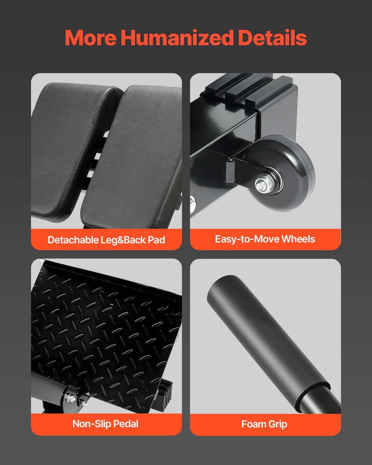 More Humanized Details: The detachable back pad allows for customizable workouts, enabling you to focus on specific muscle groups. The mobility of the chair enhances its versatility, making it a practical addition to any fitness setting
